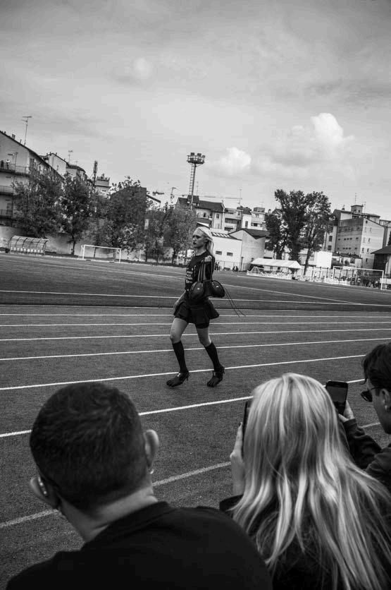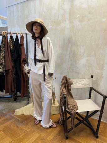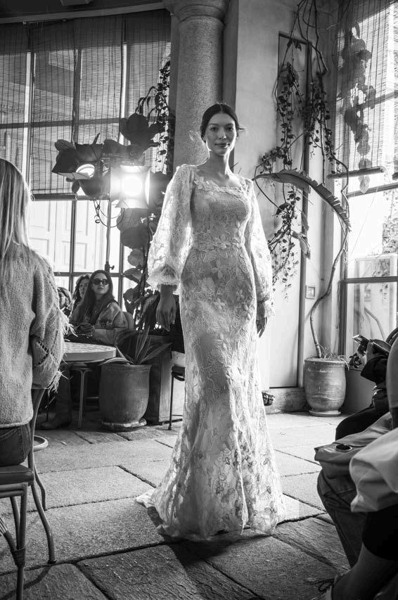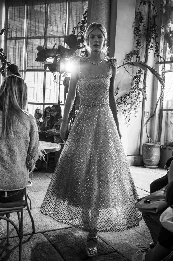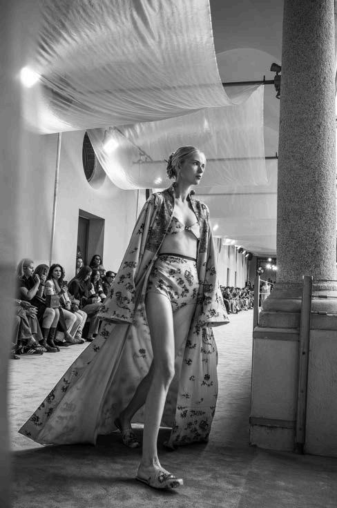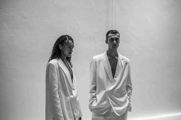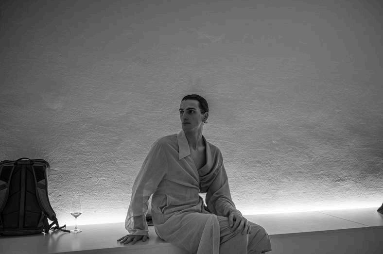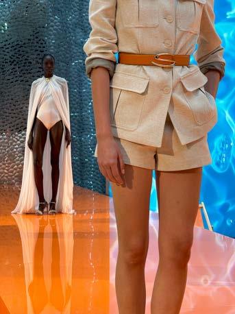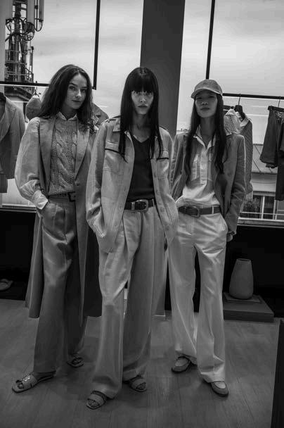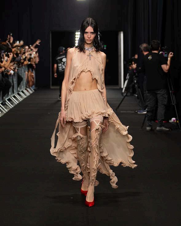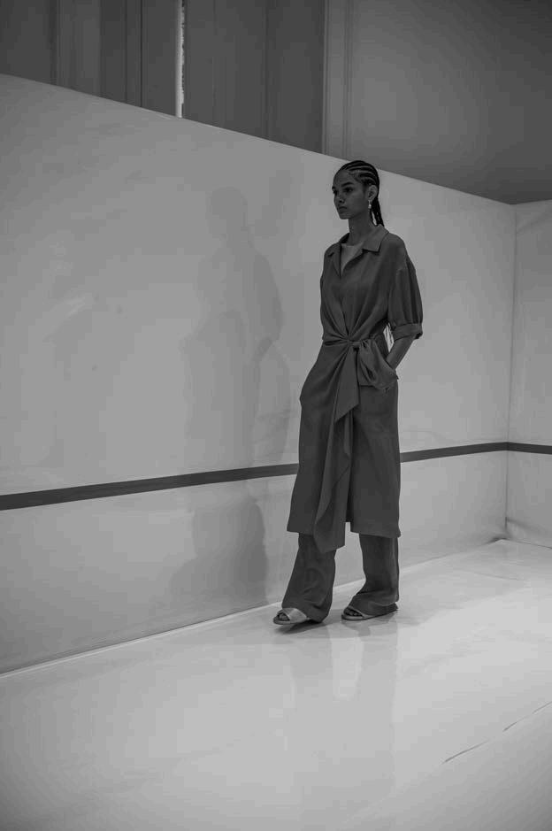 A particularly striking feature of the collection was the use of long cutouts along the décolletage, adding an element of sensuality without veering into provocation. This delicate balance of vulnerability and refinement reinforced Ogino’s ability to design for the confident, selfassured woman. Athletic influences also emerged in the collection, with Ogino developing his own distinctive sporty-chic aesthetic.