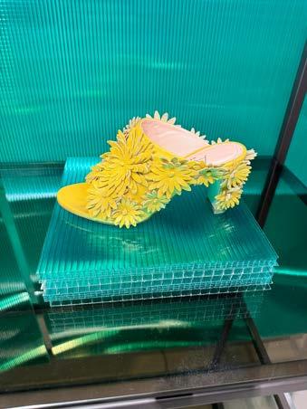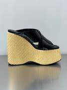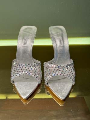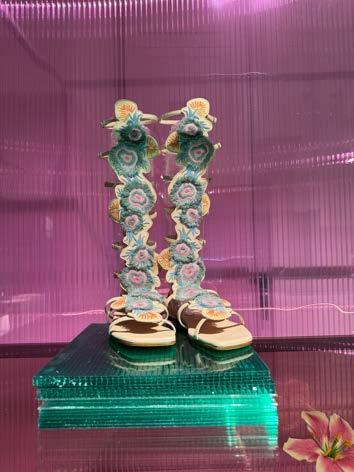 Paris Texas has never been one to back away from dramatic shapes or colours. This season saw the introduction of the “colour-shifting” Nina wedges, which featured a surrealist-style concave heel shimmering kaleidoscopically in the colours of the American west. Meanwhile, the Ava mule was proposed with a block plexiglass heel notable for its “now you see me, now you don’t” attitude and a hidden engraved logo