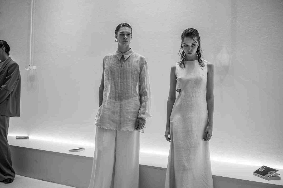Timeless Italian elegance was on display again this season at the Eleventy presentation, as the iconic brand launched a series of elevated and versatile essentials. A refined colour palette dominated, as tan, white, soft blush, and ivory were omnipresent amidst a series of structured businessready blazers and flowing summer sundresses alike. Masterful layering was on full display, as subtle differences between materials emphasized complementary neutral colours.