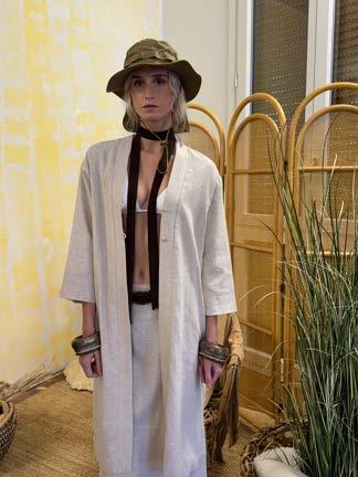 Fittingly, “Out of Africa” was a key reference point for Ravizza as she devised this collection. Practical yet refined, trousers, long skirts, and gracefully draped kimonos were made of cotton, muslin, linen, and suede. They seemed to have time traveled out of a luxury safari camp from decades ago - yet they also were timeless, possessed of a humble elegance that makes them staple wardrobe pieces. Meanwhile, “homestyle” embroidered detailing and discerningly chosen accessories such as thin scarves, leather belts in a rich brown, and oversized Masai-style bracelets, completed the aesthetic.