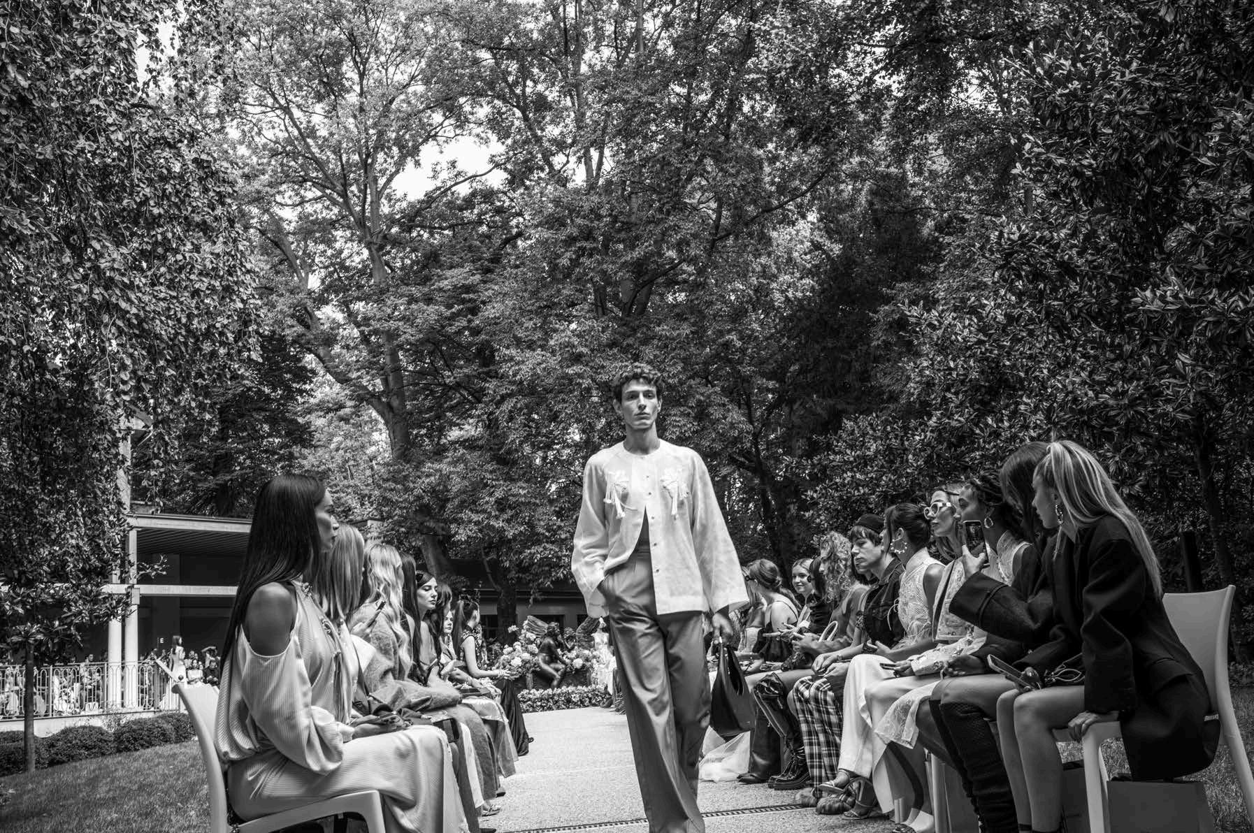 Both the focus on European fashion and the idea of intentional consumption (whether it be in the clothes we wear or the content we read) have been in Elysium’s DNA since the start. This season we invite you on to a deep dive into a carefully curated selection of brands with a powerful message to send for Spring/Summer 25 You’ll discover Moratti’s triumphant 10th anniversary collection for Redemption, Avavav’s gamechanging collaboration with Adidas, and Ermanno Scervino’s journey into the “freewheeling essence of femininity ” You’ll also read how Aniye Records rolled out the Black Carpet to invert our fashion show experience, Fiorucci entered an exciting new era, and Hui interpreted Ancient China with contemporary sensibility, Of course, all is brought to life with the exceptional black and white photography of Leroy Velasquez