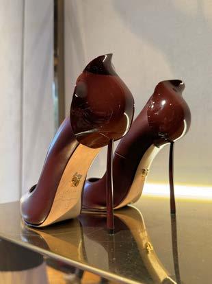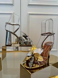 There was an ingenious nod to ballet ribbons, although these were not made of an innocent lace but instead bold leather straps possessed of a certain sexuality more at home in the bedroom than onstage. For something more delicate, yet still femme fatale, there was the Lidia mule with a thin stiletto heel and a fur and feather detail that exuded a distinct roaring twenties vibe.