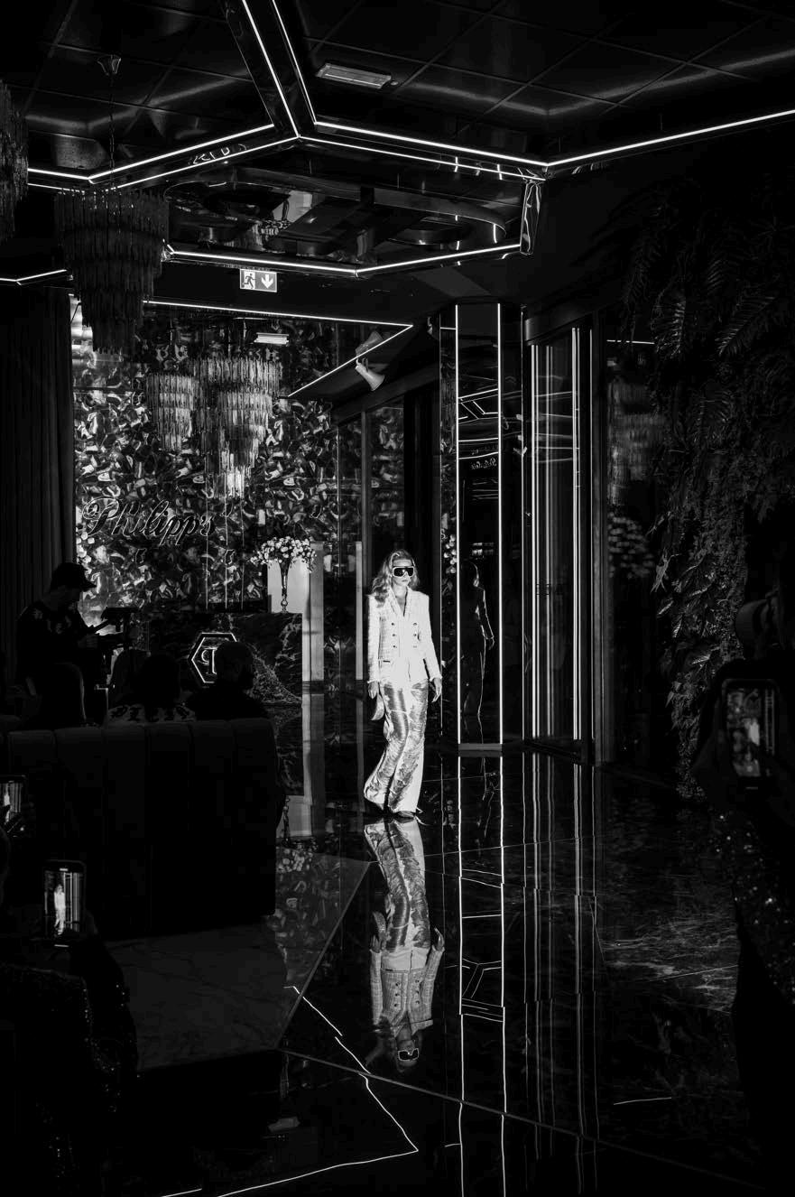 Philipp Plein and the hospitality industry are a natural fit. The larger-than-life German designer has long been known for his dramatic shows and ostentatious designs - September 2024 saw him brimg his signature swagger to the Milanese hotel and nightlife world in a way that will not soon be forgotten. The Plein Hotel, next to Giardini Montanelli on the excluisve Via Manin, marked its soft opening with its owner’s Spring/Summer 25 show. Nestled in the plush banquettes of the hotel’s glamourous club area, a VIP guest list watched as a series of bold men’s and women’s looks strutted the runway.