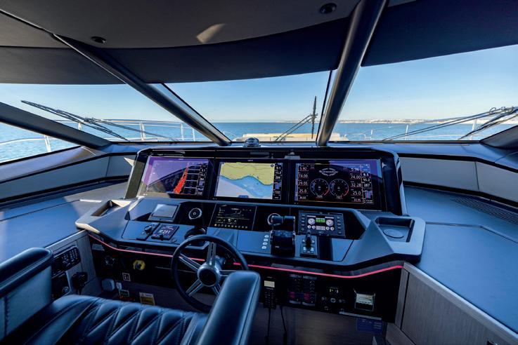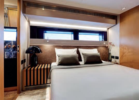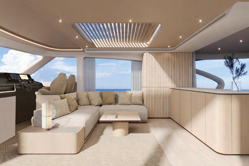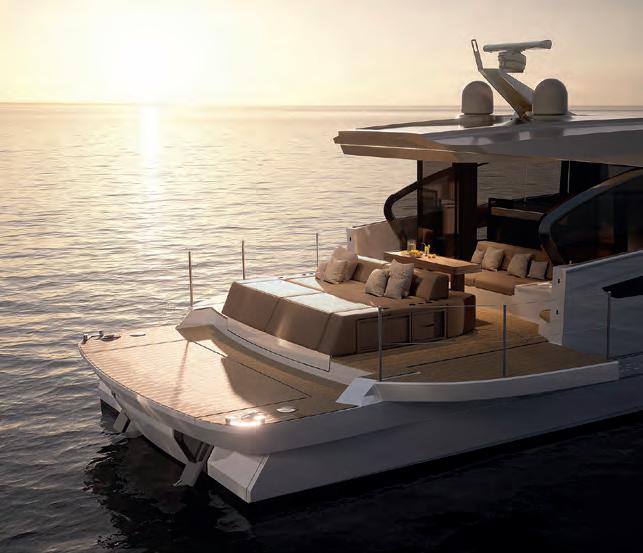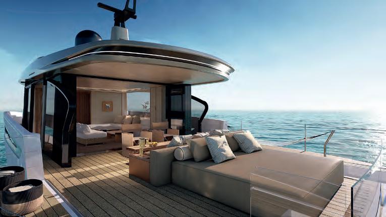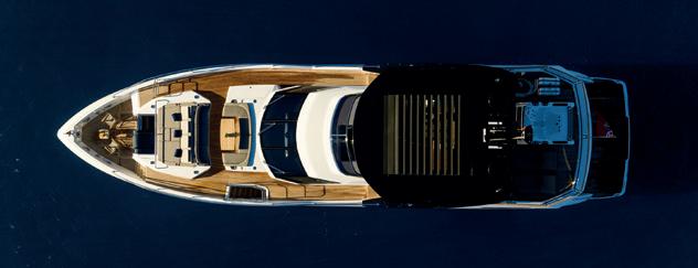 – Innovative sweeping flybridge with uninterrupted walk-around access from bow to stern.