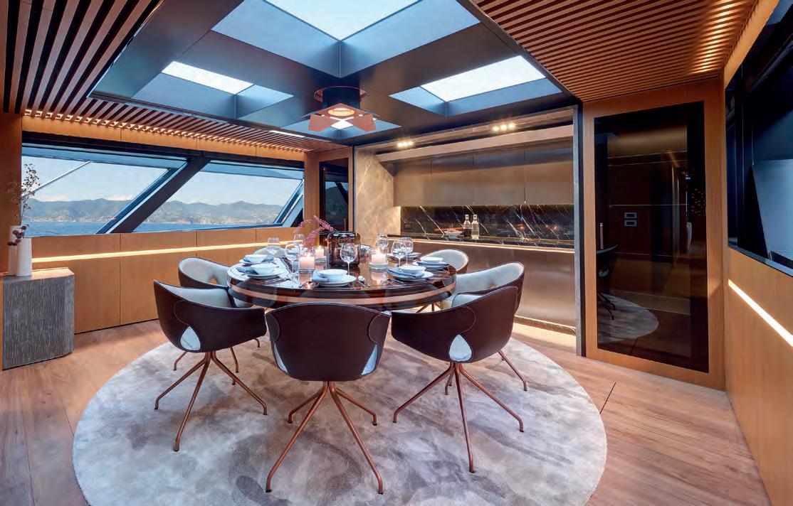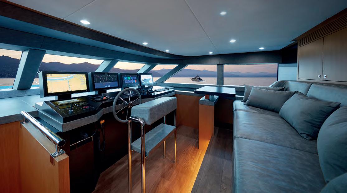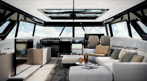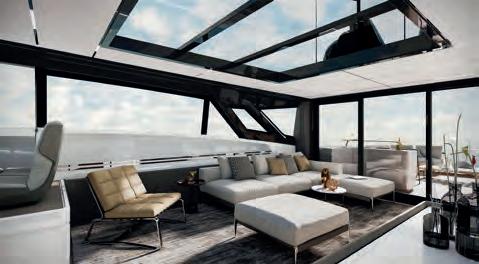 The determination of Ferretti Yachts to keep raising the standards of comfort and liveability has produced a spectacular new version of the brand’s flagship. The Skydeck edition of Ferretti Yachts 1000, a huge success story for the Forlì-based shipyard, features an upper deck redesigned to create an enclosed, sheltered space that can be enjoyed yearround and conveys the breathtaking feeling of being able to touch the sky.