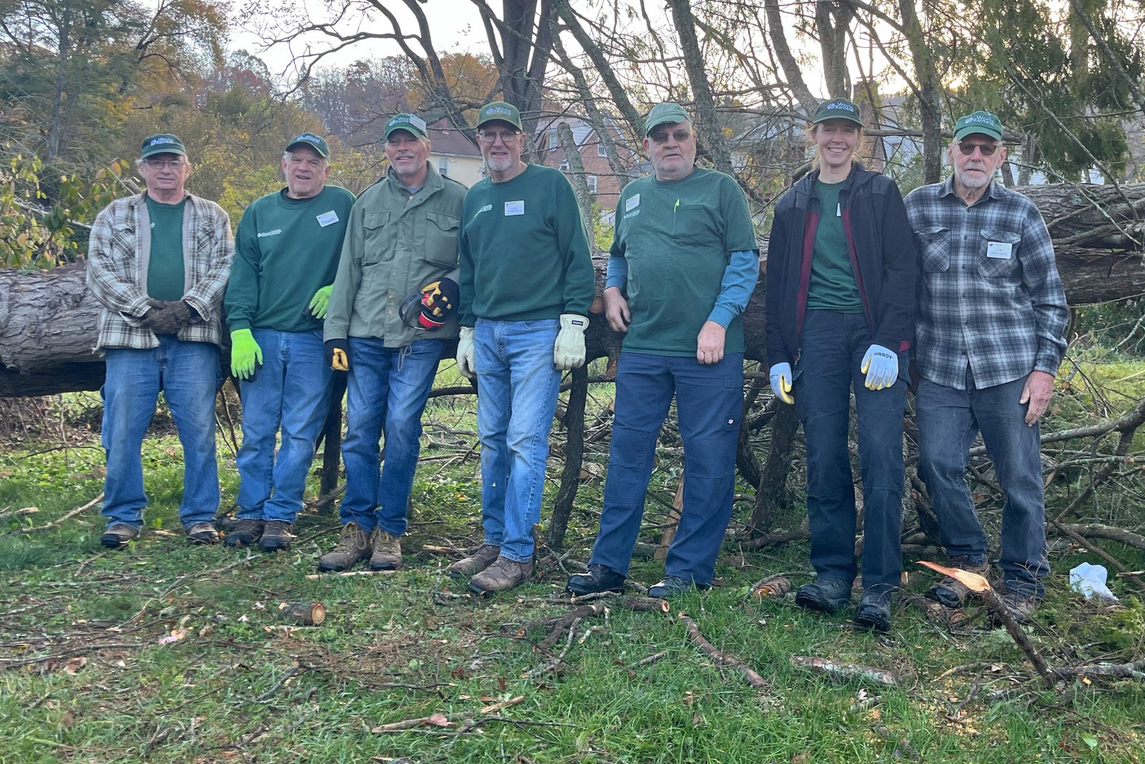 and throughout the community. This included assisting Emily (name changed), a homeowner whose backyard had tree debris. A large tree had fallen in her backyard, as well as another tree that fell in both her and her neighbour’s yard. “The volunteer work was wonderful,” Emily shared. “The volunteers were so friendly and kind while helping me, and they got the work done very quickly.” She was grateful for the help to recover from Helene.