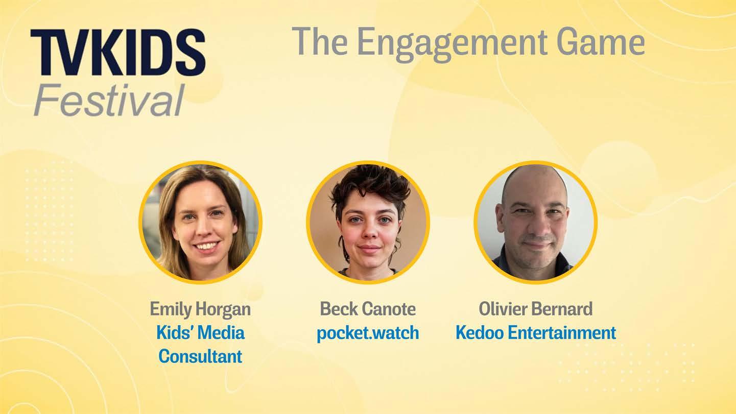 THE ENGAGEMENT GAME Kids’ media expert Emily Horgan led this conversation on engagement and discovery with pocket.watch’s Beck Canote and Kedoo Entertainment’s Olivier Bernard.