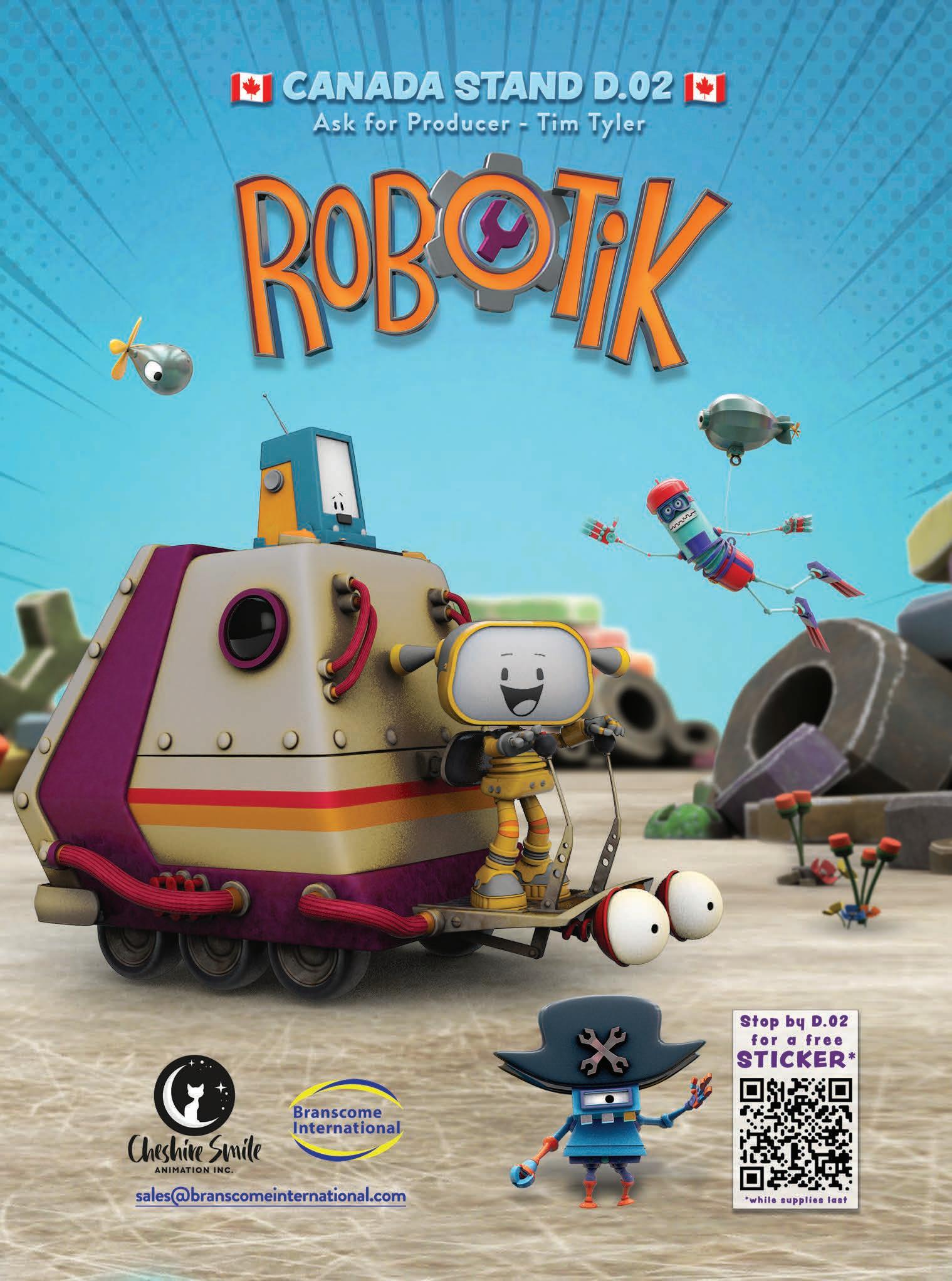 From Cheshire Smile Animation, the series ROBOTIK is a top highlight from Branscome International. “We are delighted by the joy and impact of the series as it connects to children through more and more platforms and regions,” says Tim Tyler, executive producer and CEO at Cheshire Smile. “ROBOTIK season one ran successfully on CBC Kids, SRC and TFO in Canada. In the past year, its global footprint has expanded greatly thanks to media license partnerships that have resulted in multiple new language versions (Spanish, Portuguese, French, Arabic and Mandarin).” Catherine Branscome, executive producer and president of Branscome International, adds, “We look forward to the views and feedback from our current brand partners and to expanding the ROBOTIK family of talent and resources.”