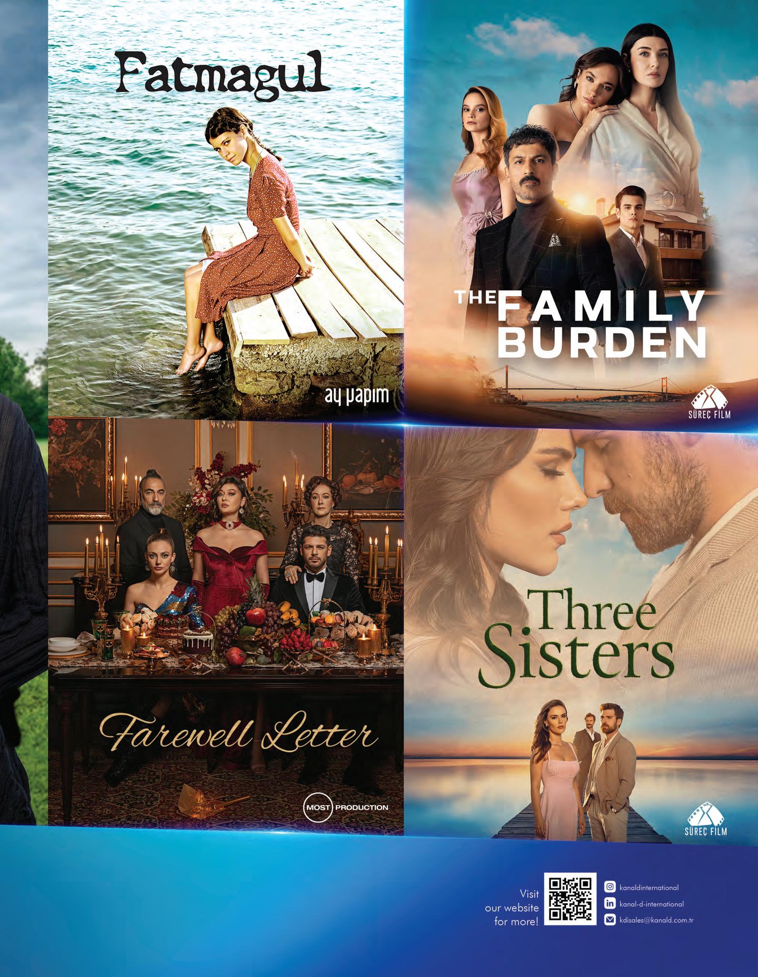 Melek, la mujer que ama, Serhat regresa a su pueblo natal, donde una enemistad lo obliga a contraer un segundo matrimonio religioso con Yıldız. Inter Medya complementa su catálogo con Eshref Ruya y Heartstrings. Mientras, Kanal D International resalta Sins & Roses , su reciente producción dramática que narra la historia de Serhat, un hombre quien, traicionado por su pasado, construyó un imperio basado en la familia y el honor. Pero cuando la mujer que ama oculta un secreto devastador, su destino se cruza con Zeynep, valiente, apasionada y diferente a cualquiera que haya conocido. Una historia de traición, deseo prohibido y un amor capaz de desafiar lo inevitable. La compañía también presenta The Family Burden. Además de ofrecer series bíblicas con altos presupuestos y valores de producción, Record TV ha invertido en la remasterización de sus renombradas telenovelas, comenzando con La