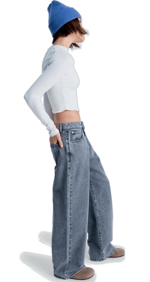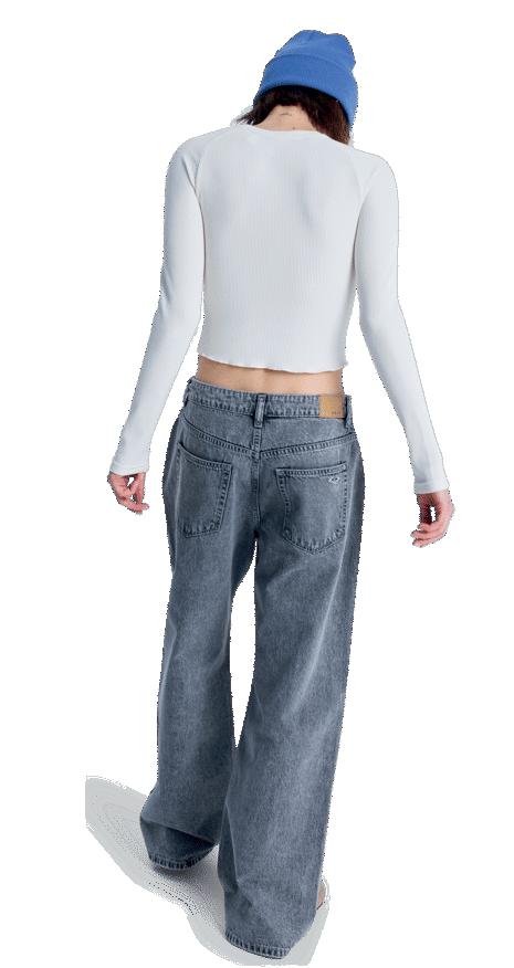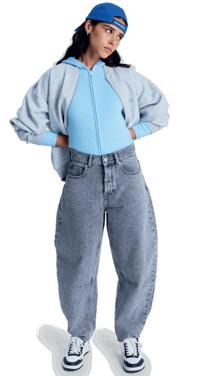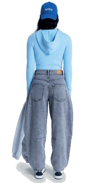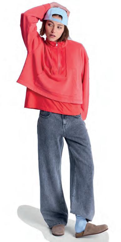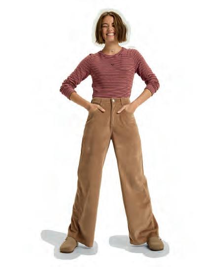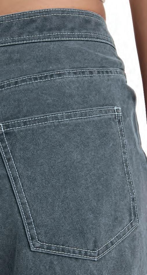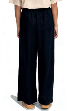 Cintura suave confeccionada con tejido acanalado ajustable con cordón elástico.