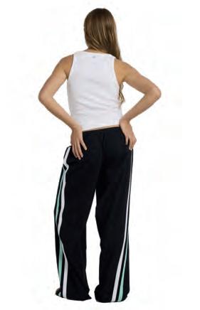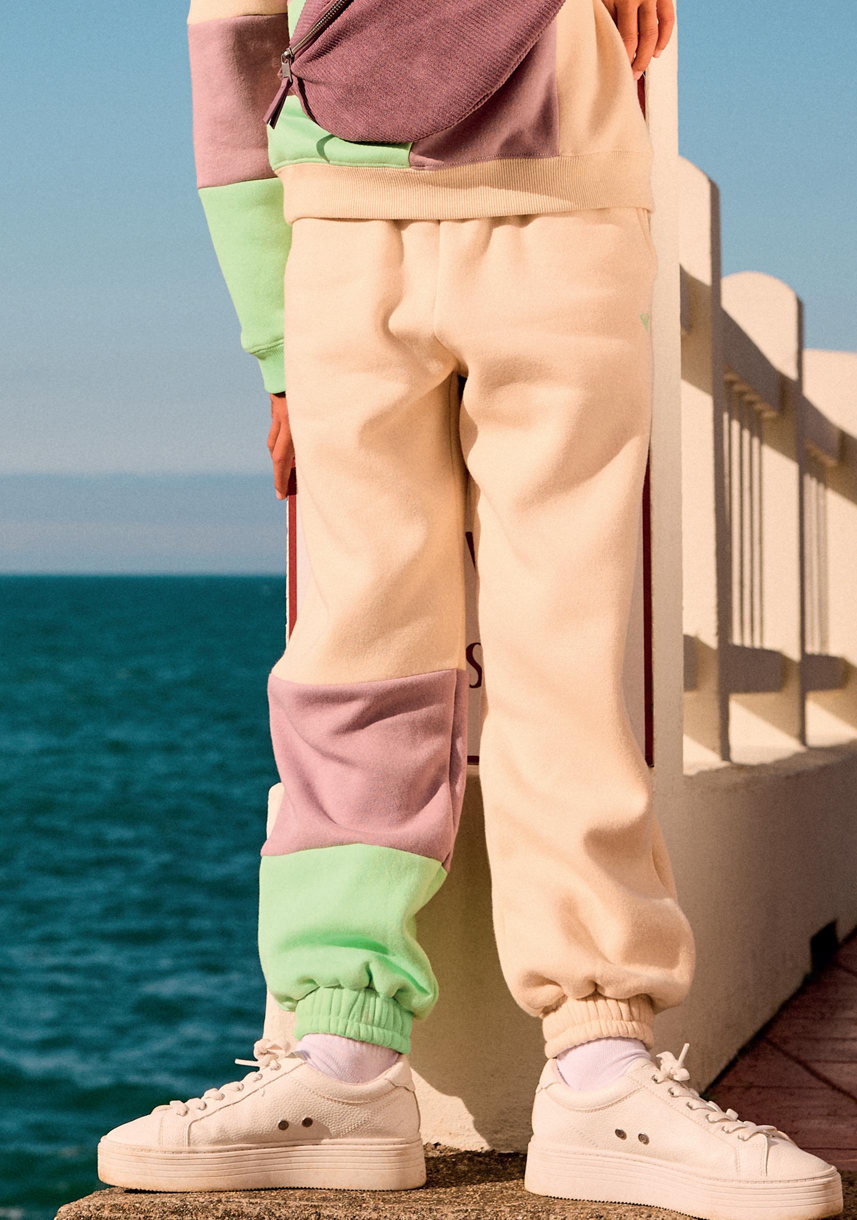 Bandas a contratono en los laterales de las piernas con ribetes de colores.