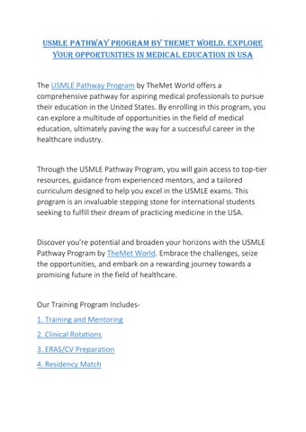 USMLE Pathway Program by TheMet World. Explore your opportunities in medical education in USA