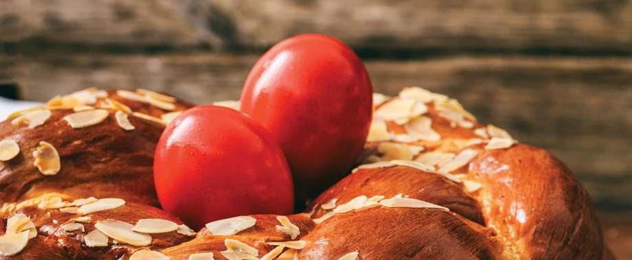 braidedanddecoratedwithred-dyedeggs,eachhavingthesymbolismoftheHolyTrinityandthebloodof Christ,respectively.