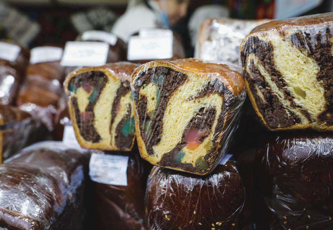 Cozonac is usually baked during Christmas and Easand street stalls. Traditionally eaten by Christians on Good Friday, made without eggs or milk.