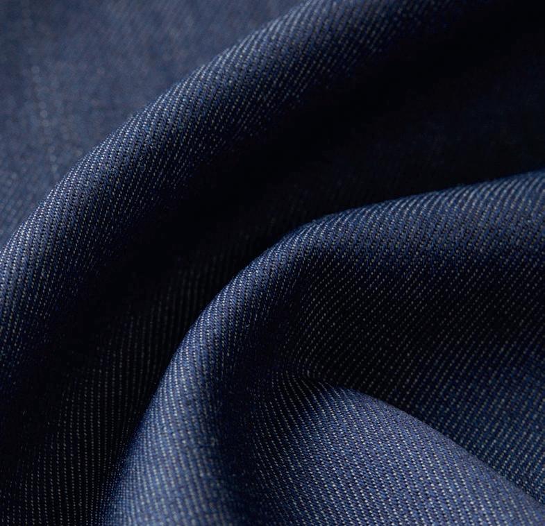 Typically, wool needs more careful handling than some fibres and is too delicate for the slasher and rope dyeing techniques associated with denim. This is why, traditionally, indigo-dyed cotton has been used for the warp yarns combined with undyed wool weft yarns. The wool used for denim must be machine washable. Micron selection is also crucial. For shirting, the wool should be 17.5 micron or finer, with a maximum of 18.5 micron. For bottom weights, 21–22 micron is suitable for coarser weft yarns, while finer weft yarns should be limited to around 19.5 micron. “In addition to the traditionally woven twill constructions, wool denim can also incorporate weaves like herringbone, Bedford cord, seersucker, chambray, jacquard weave and dobby weave,” explains Ms Gahlen. “There are also denim-inspired wool knits and jerseys; two-thread or three-thread terry structures with a diagonal knit can be employed for unique textures and comfort.”