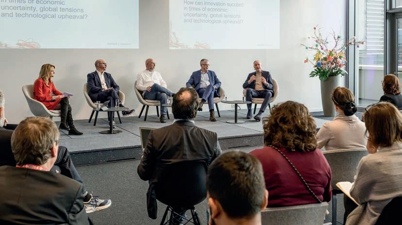 The centrepiece of the preview event was a panel discussion. Participants were Messe Frankfurt’s vicepresident for textile industry events, Olaf Schmidt, the managing director of industry association VDMA, Elgar Straub, adidas director Walter Wählt, and the general manager of Portugalbased textile research institute CITEVE, António Braz Costa.