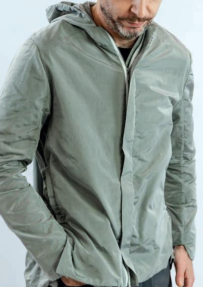 French interlining specialist Chargeurs PCC has developed another novel waterproofbreathable membrane that is produced on Karl Mayer warp knitting machines. The ultra fine knitted structure offers a measure of elasticity for added wearer comfort. Threelayer H2 laminates can weigh a mere 45 gsm and can be made in different fibre blends, combining polyester or polyamide with Tencel or even cashmere. Company chairman and CEO, Gianluca Tanzi, believes the performance characteristics of the interlining material make it possible to use it as a standalone fabric in an item of clothing. “We see potential in cycling, running and hiking. This is the fabric of the future, it is