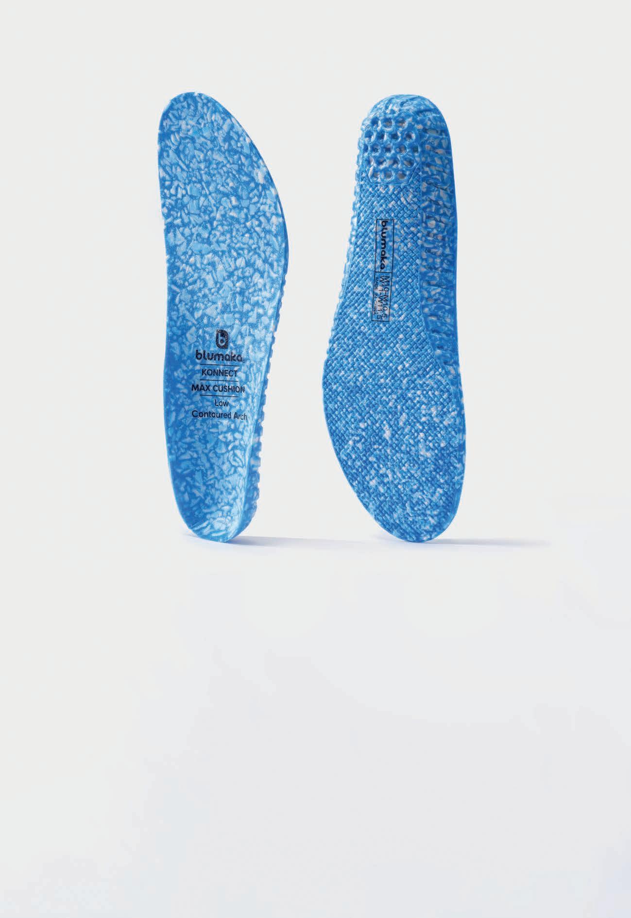 Insoles and midsoles from Blumaka put foam waste to good use while helping performance by preventing feet from sliding inside the shoe.