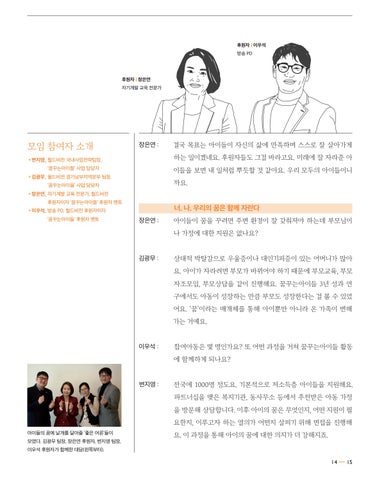 상대적 박탈감으로 우울증이나 대인기피증이 있는 어머니가 많아 요. 아이가 자라려면 부모가 바뀌어야 하기 때문에 부모교육, 부모 자조모임, 부모상담을 같이 진행해요. 꿈꾸는아이들 3년 성과 연 구에서도 아동이 성장하는 만큼 부모도 성장한다는 걸 볼 수 있었 어요. ‘꿈’이라는 매개체를 통해 아이뿐만 아니라 온 가족이 변해 가는 거예요.