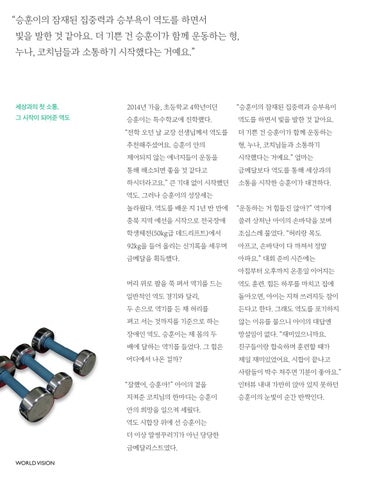 안의 희망을 일으켜 세웠다. 역도 시합장 위에 선 승훈이는 더 이상 말썽꾸러기가 아닌 당당한 금메달리스트였다. WORLD VISION