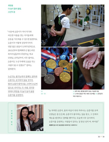 “나중에 승훈이가 커서 자기와 비슷한 아픔을 겪는 아이들에게 운동을 가르쳐줄 수 있으면 좋겠어요. 승훈이가 이렇게 성장하기까지 정말 많은 분들이 도와주셨거든요. 2012년부터 함께해주신 월드비전 복지사님들부터 후원자님, 학교 선생님, 코치님까지, 너무 많아요. 승훈이도 누군가에게 도움을 주는 사람이 될 수 있겠죠?” 엄마는 꿈꿔본다.