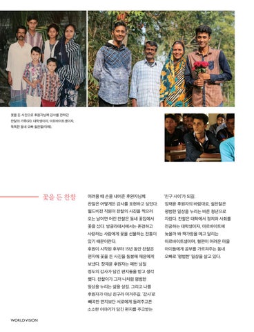보냈다. 장재윤 후원자는 매번 넘칠 정도의 감사가 담긴 편지들을 받고 생각 했다. 찬찰이가 그저 나처럼 평범한 일상을 누리는 삶을 살길. 그리고 나를 후원자가 아닌 친구라 여겨주길. ‘감사’로 빼곡한 편지보단 서로에게 들려주고픈 소소한 이야기가 담긴 편지를 주고받는 WORLD VISION