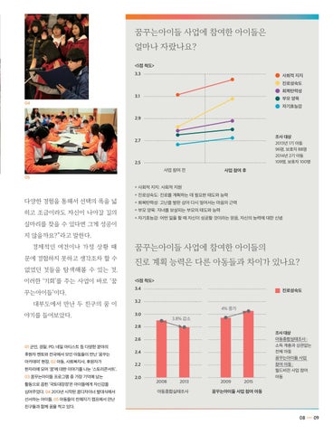 지 않을까요?”라고 말한다. 경제적인 여건이나 가정 상황 때 문에 경험하지 못하고 생각조차 할 수 없었던 것들을 탐색해볼 수 있는 것. 이러한 ‘기회’를 주는 사업이 바로 ‘꿈 꾸는아이들’이다. 대부도에서 만난 두 친구의 꿈 이 야기를 들어보았다.