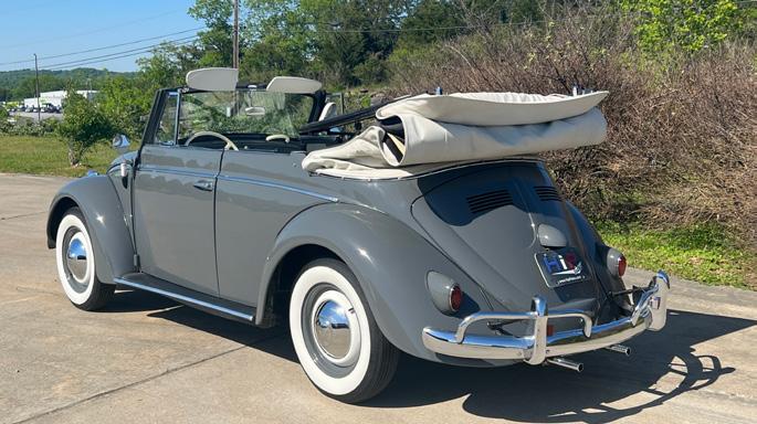 Unlike their steel-roofed counterparts, Beetle Convertibles were built in a separate plant by Karmann. Volkswagen convertibles manufactured prior to 1968 are among the most desirable and are renowned for build quality and luxury features such as a three-layer sound-deadening top. The 1954 update to a 1,200-cubic-centimetre, 36-horsepower powerplant resulted in a roadworthy car comfortable at U.S.-legal speeds. This charming Convertible is 1 of only 5,841 produced for the 1960 model year and is a prime example of the legendary “People's Car.” Beautifully restored, this Beetle features attractive Juniper Grey paintwork and newly mounted wide whitewall tires contrasted by a crisp white convertible top. This Beetle is a rust-free