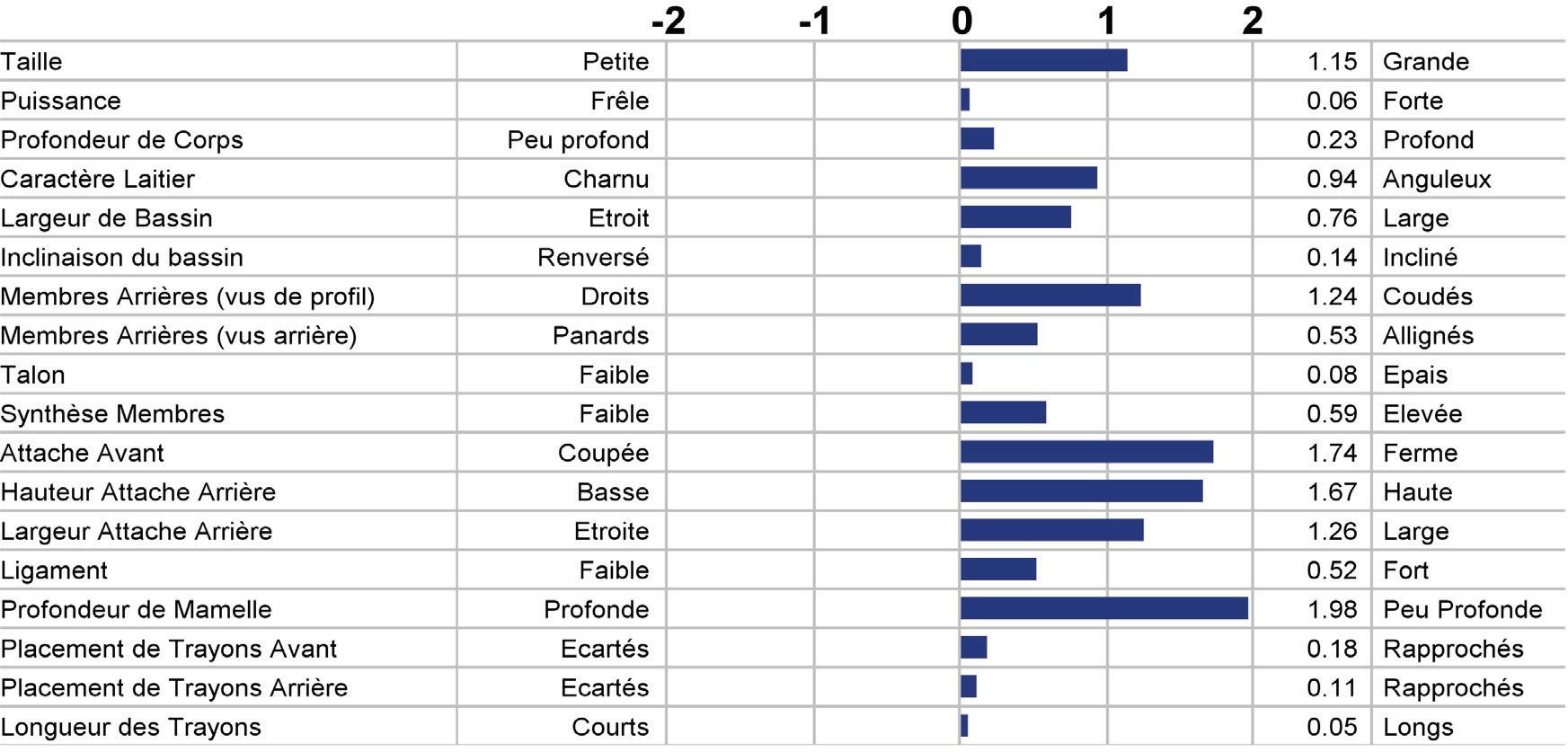 • Facilité de vêlage à +11. La moyenne de la race est 6, un score plus élevé est plus facile
