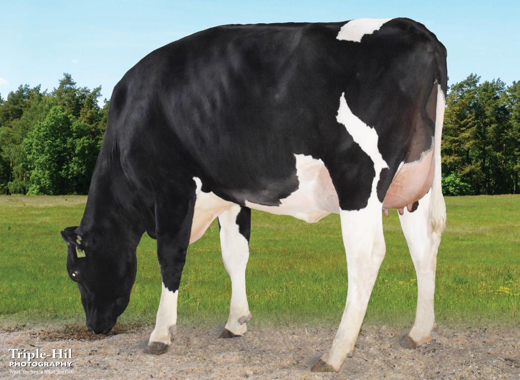 GOLDTOP 7HO13537 S-S-I SHIL STCLF GOLDTOP-ET SUTCLIFF X JACKMAN X MOGUL • Excellent Blend of Fertility & Production • Irish Daughter Proven • Excellent Body Condition Score PHYSICAL TRAIT EVALUATION CDCB/HA Genomic Eval. 12-21 118 dtrs. 47 herds 92 Rel.TYPE: UDC: FLC: BWC: 1.26-0.120.24-0.16 Zoetis Eval. 12-21 WT$ Mastitis/Rel.% R. Placenta/Rel.% Metritis/Rel.% Milk Fever/Rel.% Ketotis/Rel.% DA/Rel.% Lameness/Rel.% Cow Resp Disease/Rel.% Cow Abortion/Rel.% Twinning/Rel.% Cystic Ovary/Rel.% Calf Resp Disease/Rel.% Calf Scours/Rel.% Calf Livability/Rel.% TPI: 2208 DWP$: 311NM$: 209 Reg. No. HO840003131563868 Birth Date: 2015-09-21 aAa: N/A Beta Casein: A1A2 Dam: S-S-I JCKMAN 8055 10217-ET GP-81 5-06 3 365D 18829kgM 3.9% 730kgF 2.9% 555kgP MGD: FUSTEAD SSI MOGUL S8055-ET EX-91 5-02 3 330D 14923kgM 3.9% 577kgF 3.0% 447kgP FR4221 MGGGD: Fustead Oman Sammy-ET HHP$: 449 GUSA Eval. 12-21 510 dtrs. 148 herds PTAM PTA%F PTAF PTA%P PTAP Rel. Feed Efficiency Index PL SCS Fertility Index DPR SCR SCE/Rel. SGL MS Milking Temp. (CDN) BCS (CDN) -942 0.17/9 0.07/-11 96 -24 3.4 2.60 3.1 3.1 N/A 1.9/89 -4.2 100 101 111 Milk/Rel.% Fertility/Rel.% Calving/Rel.% Beef/Beef Rel. % Maintenance/Rel.% Management/Rel.% Health/Rel.% ICBF Sub Indexes 1-22 €217/57% €74/79% €60/90% €2/94% €7/80% -€2/73% €33/79% Milk (kg) Fat (kg) Protein (kg) Fat (%) Protein (%) Production Rel. % ICBF Production Eval. 1-22 277 12 10 0.02 0.00 98% PHYSICAL TRAIT EVALUATION ICBF Conformation Eval. 1-22 €217 EBI €57 Milk SI €74 Fert SI €33 Health SI 300 110/72% 107/80% 109/68% 106/56% 111/63% 109/67% 104/71% 107/68% 105/55% 98/76% 100/36% 94/68% 96/70% 87/73% Daughters Herds Parity Milk (kg) Fat (kg) Fat (%) Prot (kg) Prot (%) 310 76 1 6110 254 4.16 211 3.45 100 29 2 7462 301 4.03 257 3.44 3 2 3 8044 305 3.79 269 3.34 ICBF 305 Day Milk Recording Information Date Of Evaluation Hrd Dau Herd Mates Average CI Average Survival Dau Herd Mates Dau Herd Mates Jan 2022 43 128 946 368 378 91 90 Sire Progeny and Progeny Herdmate Information Body: Dairy Strength:F&L:Mam: 1.49 0.74 -0.160.56Conf: 1.77