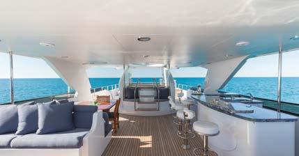 detail throughout your private yacht vacation. Relax and unwind on the aft deck seating area, soak up the sun on the sundeck's comfy lounger, or grab a refreshing cocktail at the bar. BELLA TU is the ideal vessel for exploring the crystal-clear waters of the Bahamas.