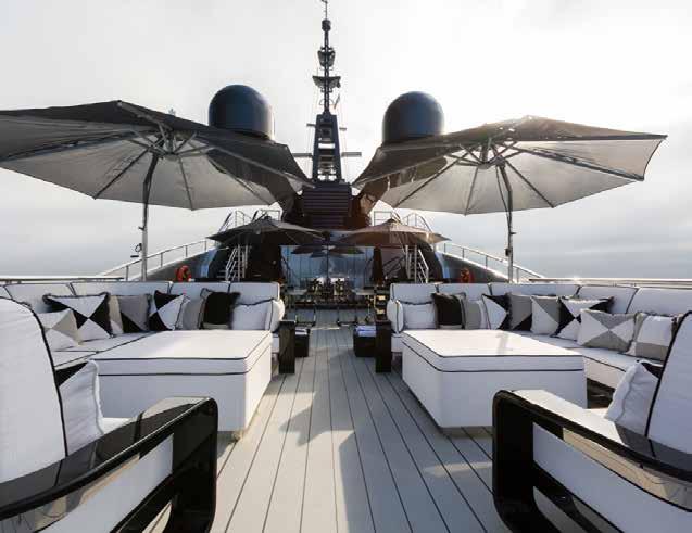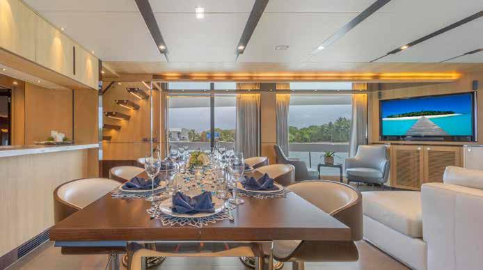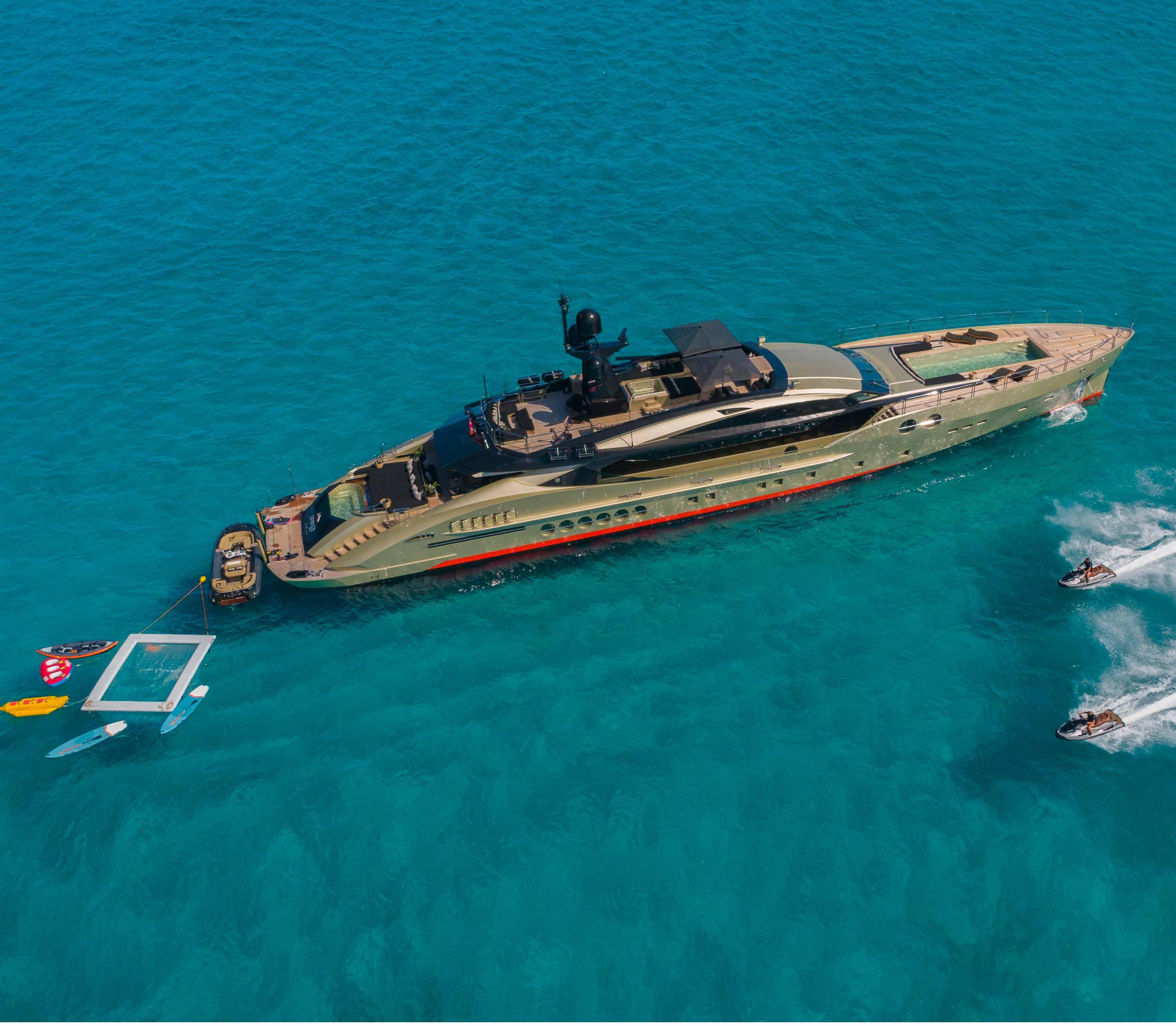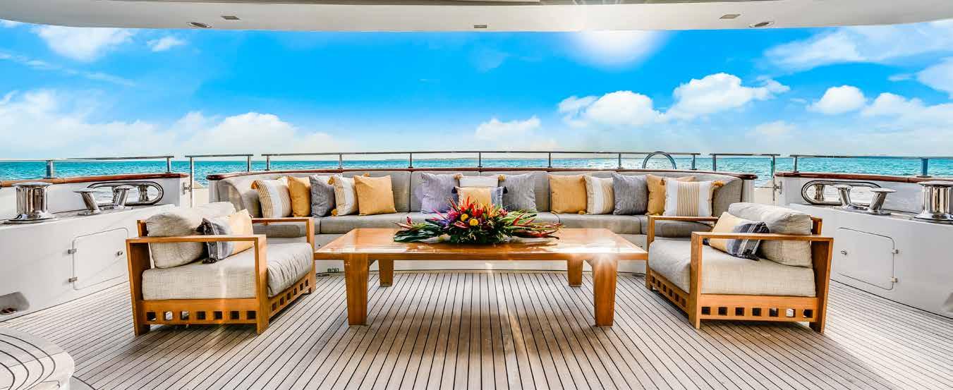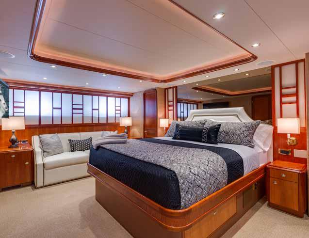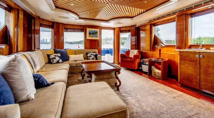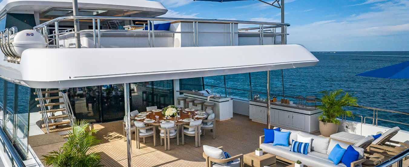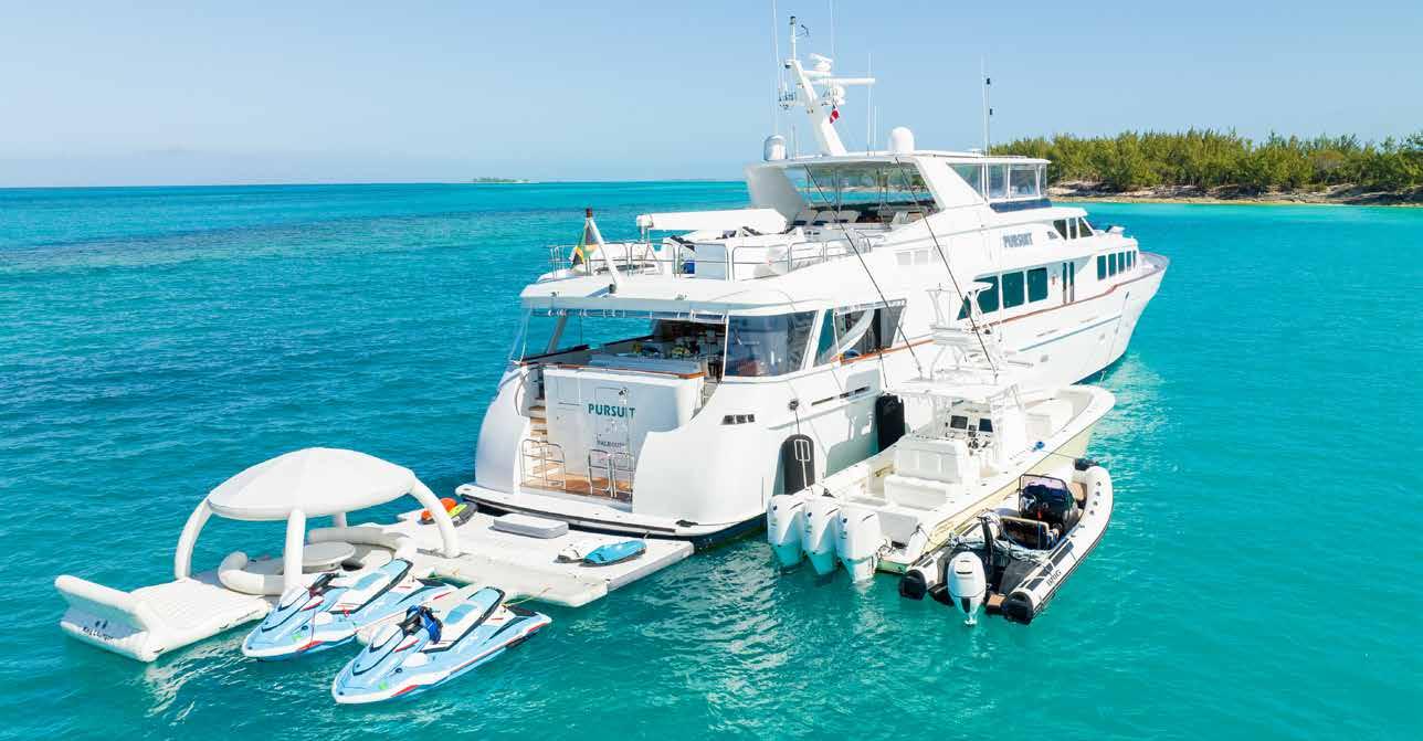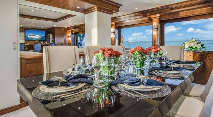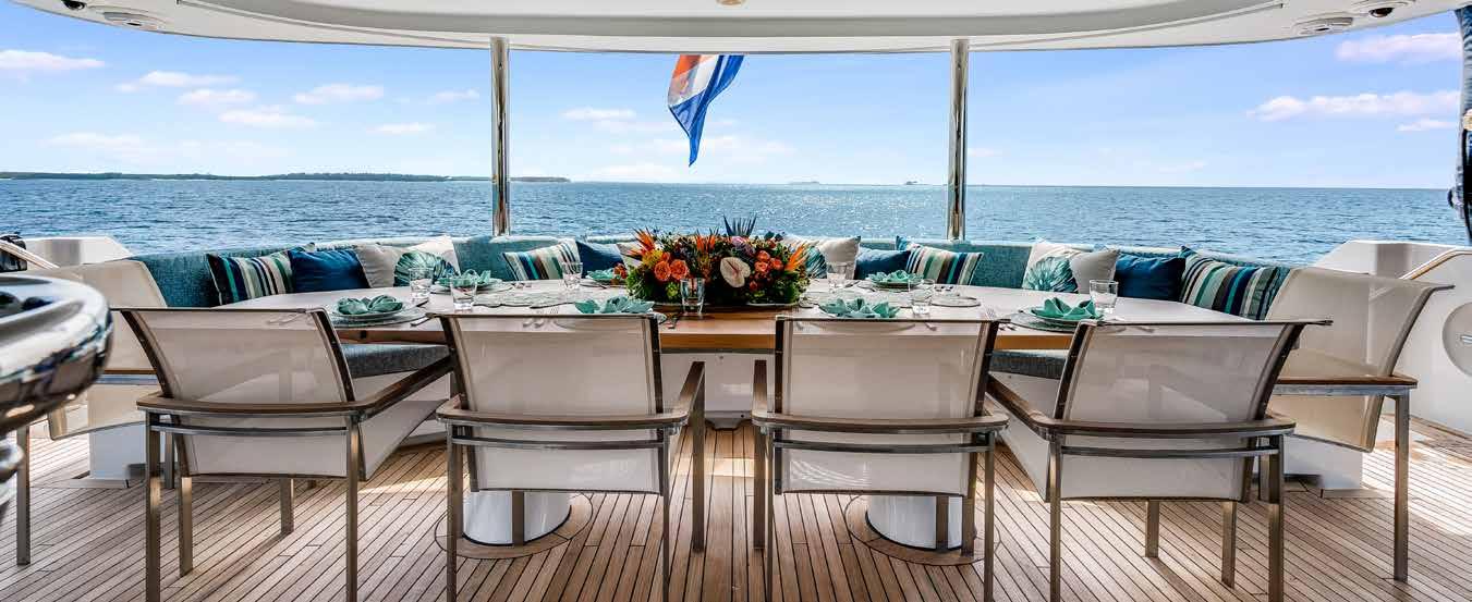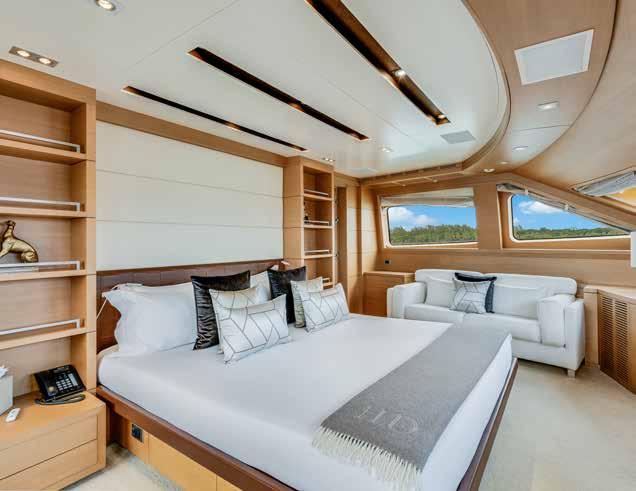 interior and deck spaces, ROYAL RITA is the epitome of relaxation. Some of her key features include a dedicated owner's suite, al fresco dining, a hydraulic swim platform, a comfortable exterior lounge, a 16' Highfield tender, four paddleboards, snorkeling gear, an inflatable floating island, jet skis, light fishing gear, and hammocks.