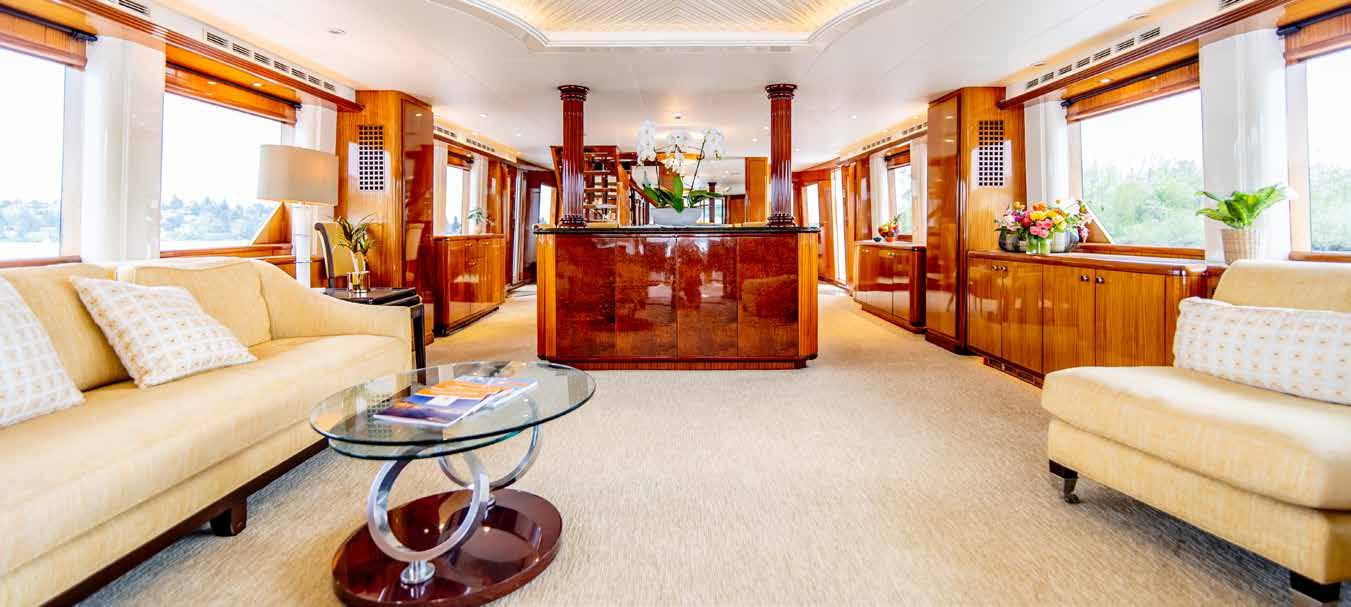 The spacious salon provides a perfect place to unwind, and the inviting aft deck seating area is ideal for alfresco dining. Experience unparalleled beauty, tranquility, and adventure on the ultimate luxury yacht vacation. Create lifelong memories exploring the Pacific Northwest aboard this magnificent vessel.