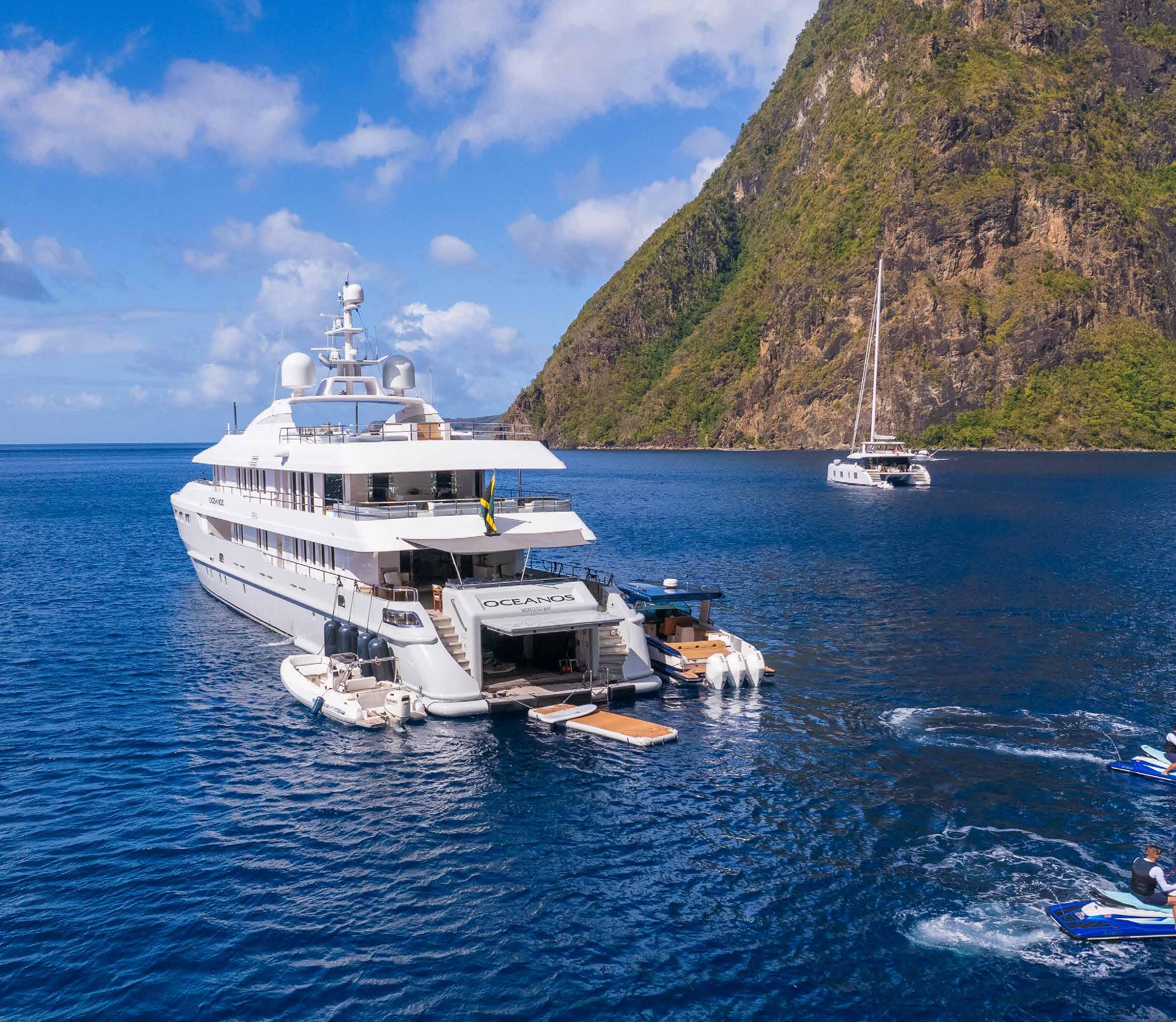 OCEANOS 161’ (49.2m) Mondomarine megayacht visiting Marigot Bay Yacht Haven in Saint Lucia on Charter in 2023