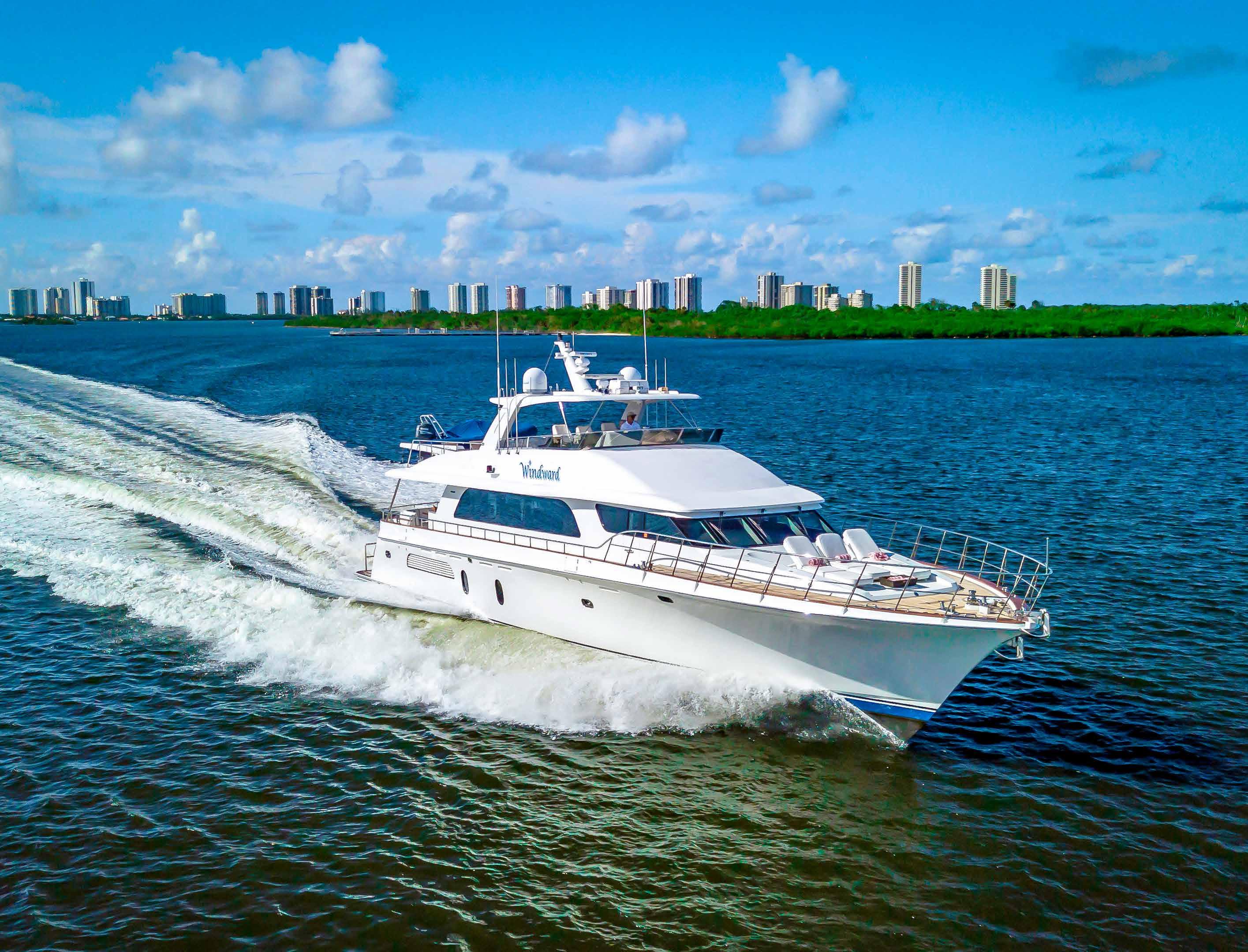 WINDWARD, a luxurious 3-stateroom motor yacht, offers the ultimate comfort and relaxation for your dream vacation or yacht charter in Fort Lauderdale, FL. With 4 dedicated crew members, the full-beam master stateroom boasts a King Size bed, his and her bathrooms, and plentiful storage space, while the guest