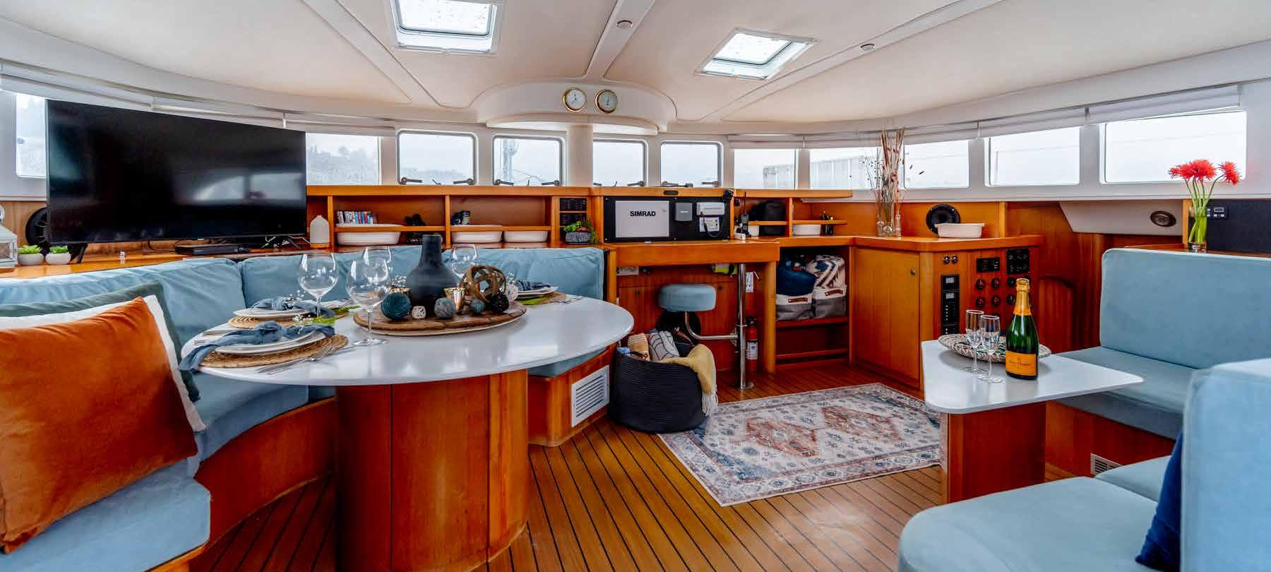 suites include 1 Queen and 1 twin stateroom. The large salon and dining area feature a full wet bar, perfect for preparing pre-dinner cocktails. Let our experienced Captain and excellent crew cater to your every need and ensure that your trip aboard WINDWARD is a truly unforgettable experience.