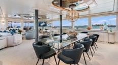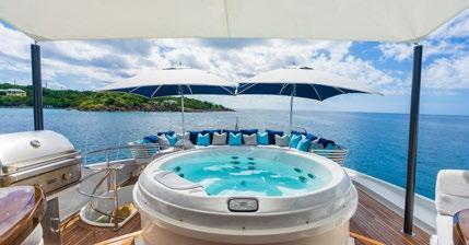 formal dining area and a spacious aft deck for al fresco dining. HOYA SAXA also features a flybridge with a dining area, Jacuzzi, and additional outdoor seating, while a professional crew of 4 ensures an exceptional charter experience.