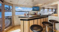 elevated ceilings. HOOKED HER boasts a spacious aft deck with modifiable sun loungers, a serene bow seating area for relaxation, and a tow tender is readily available for term charters. Experience rapid travel with her high cruising speed allowing you to be at each destination quickly. Experience cruising at its finest onboard HOOKED HER.