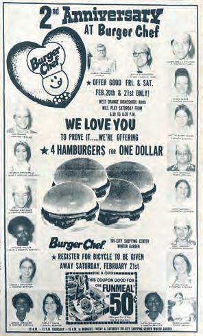 In the 1970s, Winter Garden boasted three major hamburger restaurants at the intersection of Highway 50 and Dillard Street. One of them, Burger Chef, advertised its second anniversary in The Winter Garden Times. Owner Robert Berning offered customers a great deal for one weekend in February — four hamburgers for $1.