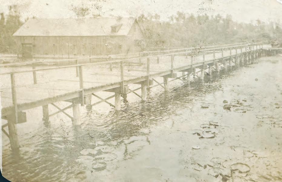 The photograph, shared by a member of the extended Sims family, is inscribed on the reverse from “Lalla Sullivan to Palla Sullivan — the new boathouse on Lake Apopka.” WGHF staff believes this undated image depicts an early forerunner of the Main Street dock. Today, the pier is a perfect vantage point from which residents and visitors enjoy spectacular sunsets over Lake Apopka.