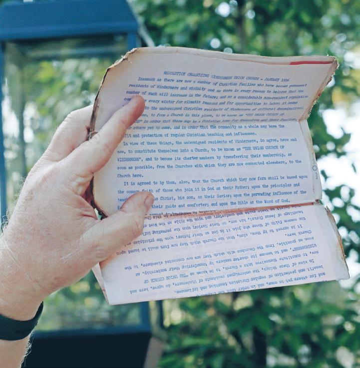 The capsule included a variety of letters from Windermere’s leaders; a newspaper article from The Winter Garden Times; church programs from Windermere Union Church; bulletins from the Rotary Club of Windermere; a mysterious coin; and a copy of the speech written by Kinzey to celebrate the town’s 50th anniversary in 1975.