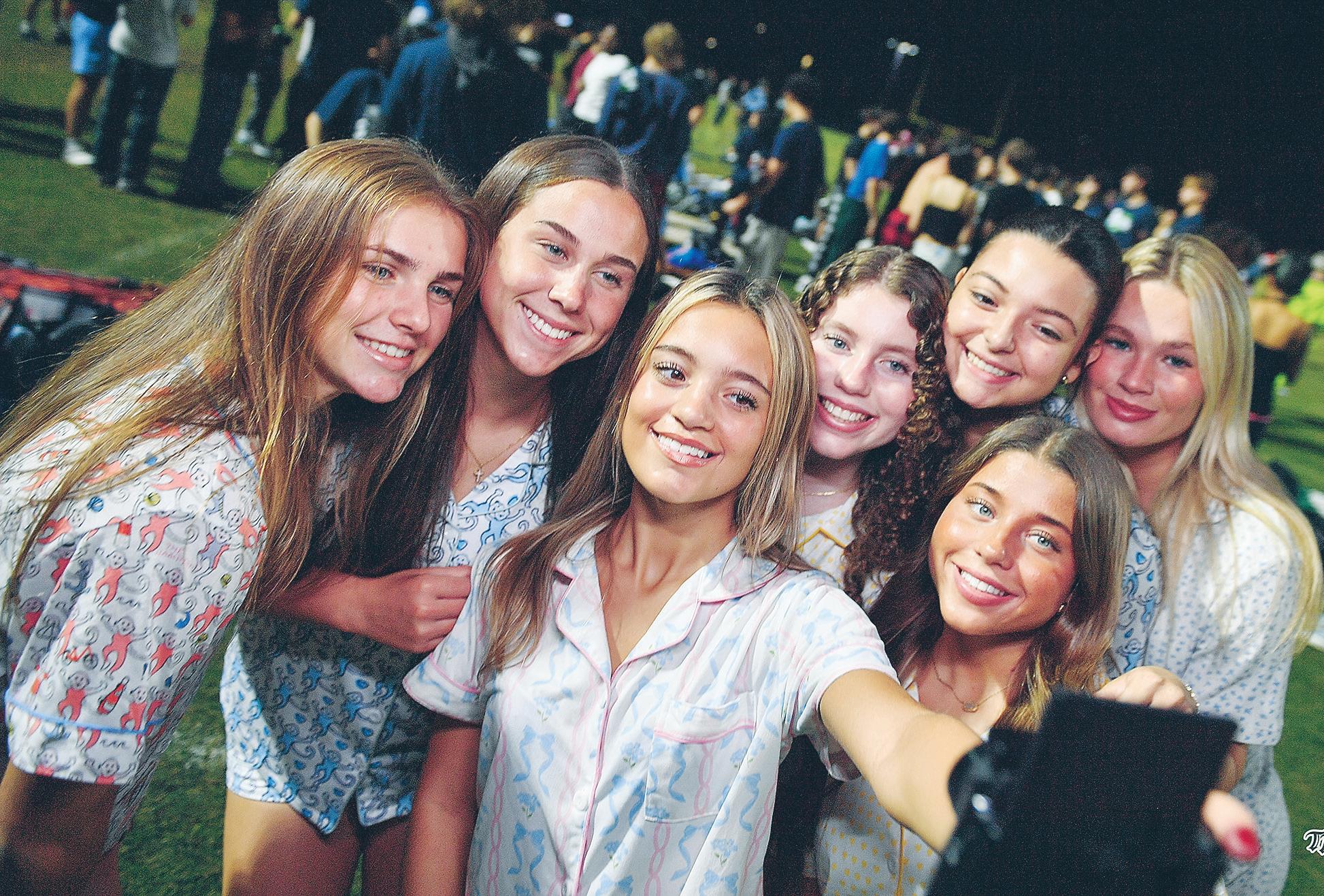 Seniors — many dressed in pajamas — received special T-shirts and Chick-fil-A biscuits before settling in on the field for a special morning.