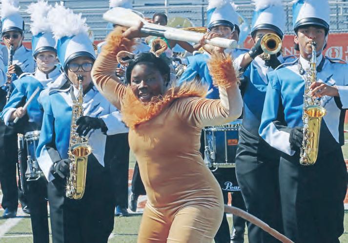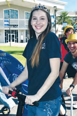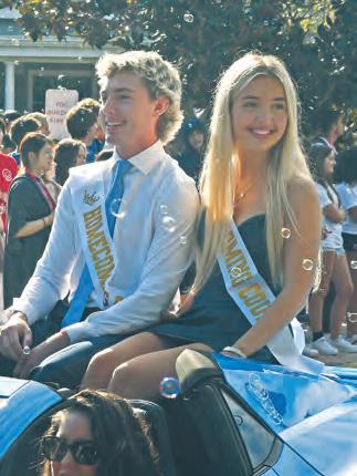 with smiles on their faces. The parade took place around the school’s lake, which then led to the pep rally. The pep rally was filled with energy coming from games and performances from the dance team, cheerleading, band and more. Kings and queens also were crowned during the pep rally. — LETICIA SILVA