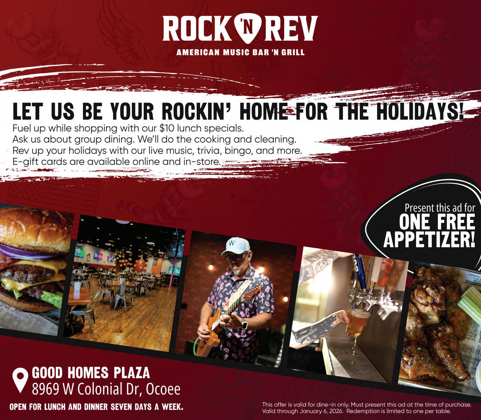 West Orange residents are blessed to live in a community teeming with Christmas cheer. Check out our exclusive calendar of holiday events (pages 26-29) and make your plans for some Christmas fun with friends and family. There are so many events right here in our communities — Winter Garden, Ocoee, Windermere, Horizon West, Dr. Phillips, Oakland and Gotha. And if that weren’t enough, we even included some favorites from throughout Central Florida.