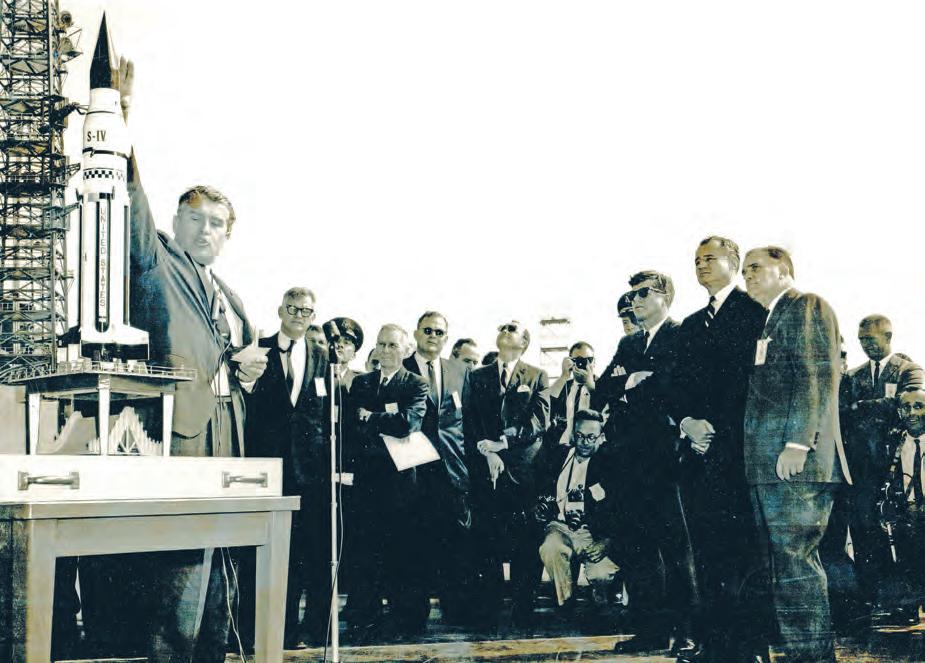 On Nov. 16, 1963 — six days before his assassination — President John F. Kennedy visited the space center at Cape Canaveral. He was present to witness the launch of a missile fired from a Polaris submarine, although the demonstration was unsuccessful due to a technological glitch.