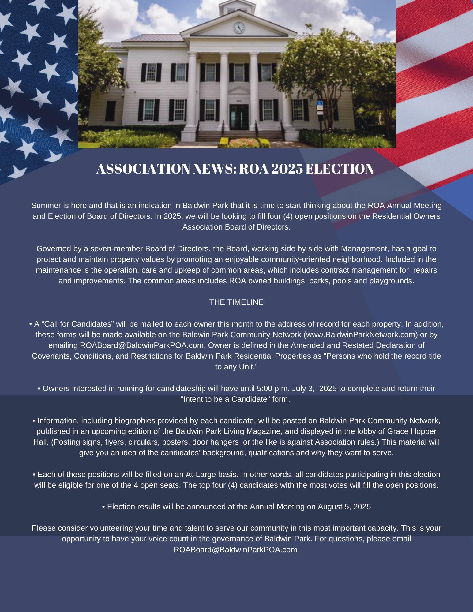 contact Suz Tapy at stapy@baldwinparkpoa.com. For advertising inquiries, call (407) 656-2121.