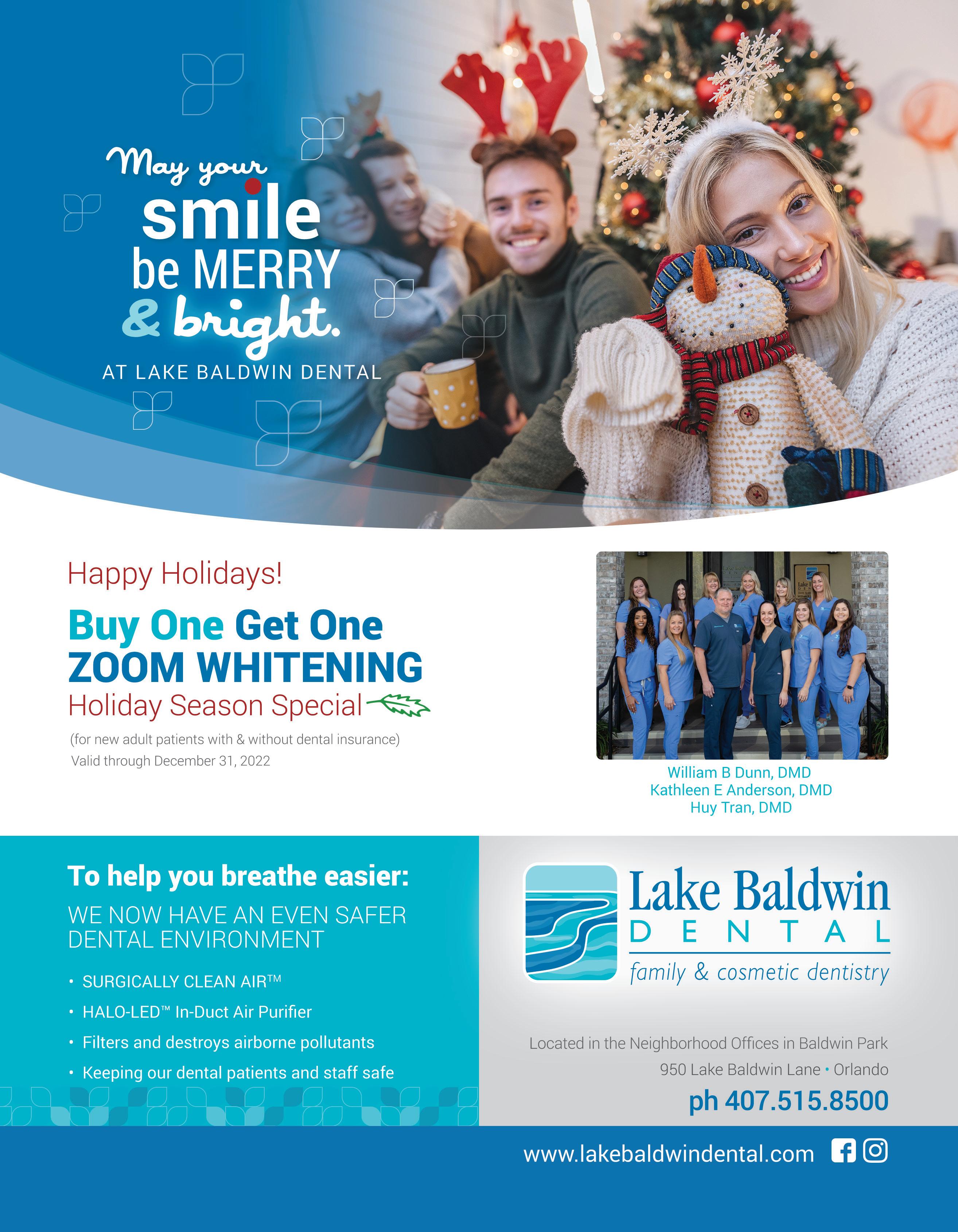 6 BALDWIN PARK LIVING | DECEMBER 2022 W I N T E R P A R K H I G H S C H O O L C H R I S T M A S E V E 6 : 3 0 P M | C H R I S T M A S D A Y 1 0 : 4 5 A M L A K E B A L D W I N C H U R C H C O M 378718-1
