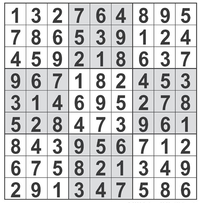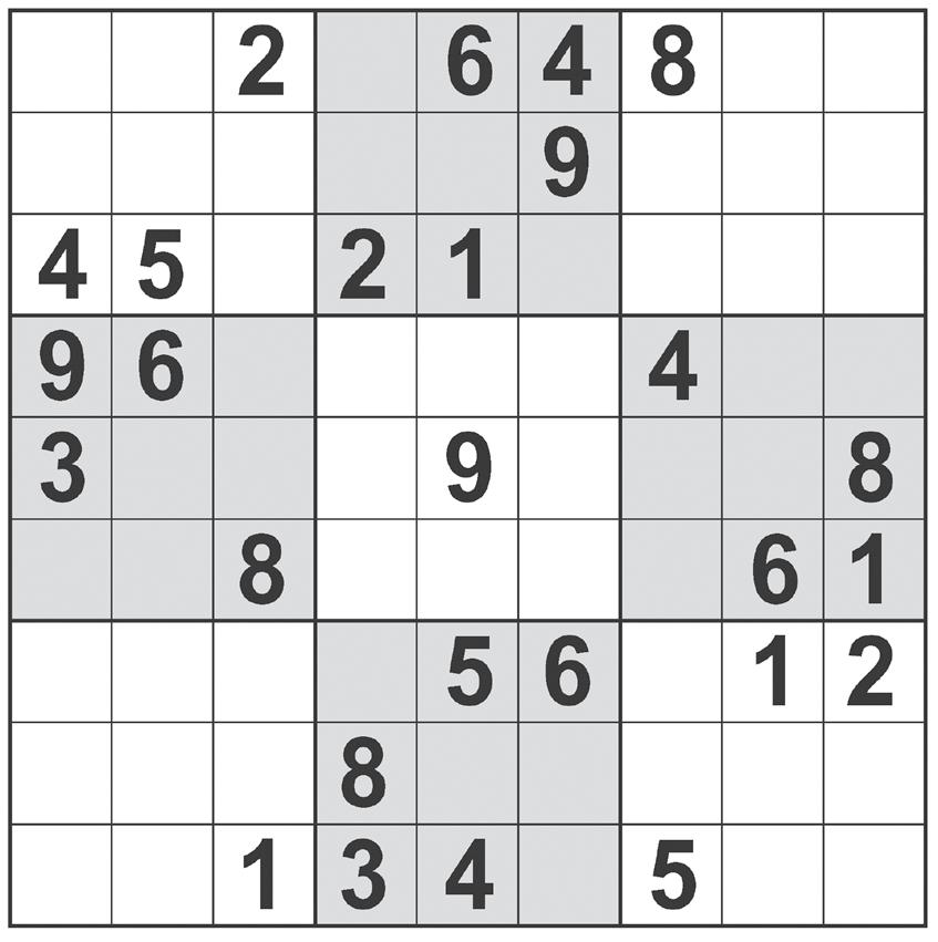 Complete the grid so that every row, column and 3x3 box contains every digit from 1 to 9 inclusively.