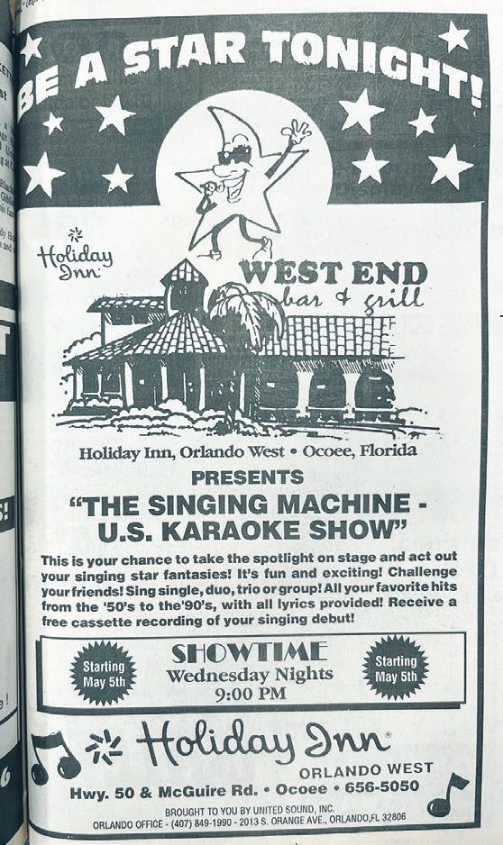 The West End Bar & Grill at the Holiday Inn — Orlando West was the fun place to be on Wednesday nights when the hotel in Ocoee began its “The Singing Machine — U.S. Karaoke Show” in 1993.