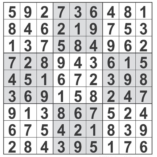 Complete the grid so that every row, column and 3x3 box contains every digit from 1 to 9 inclusively.